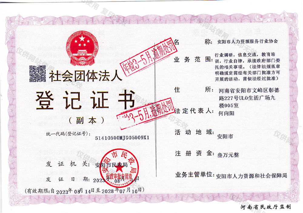 安陽(yáng)市人力資源服務(wù)行業(yè)協(xié)會(huì )成立于2017年9月,是安陽(yáng)市人力資源服務(wù)機構聯(lián)合發(fā)起,經(jīng)安陽(yáng)市人力資源和社會(huì )保障局審核同意,安陽(yáng)市民政局核準登記的非盈利性法人社會(huì )組織,安陽(yáng)達誠勞務(wù)派遣有限責任公司當選為理事長(cháng)單位。協(xié)會(huì )現有會(huì )員單位60家。協(xié)會(huì )秘書(shū)處作為協(xié)會(huì )日常工作機構,下設業(yè)務(wù)信息部、會(huì )員發(fā)展部、財務(wù)管理部、培訓管理部、政策研究室(法務(wù)部)和外聯(lián)部。